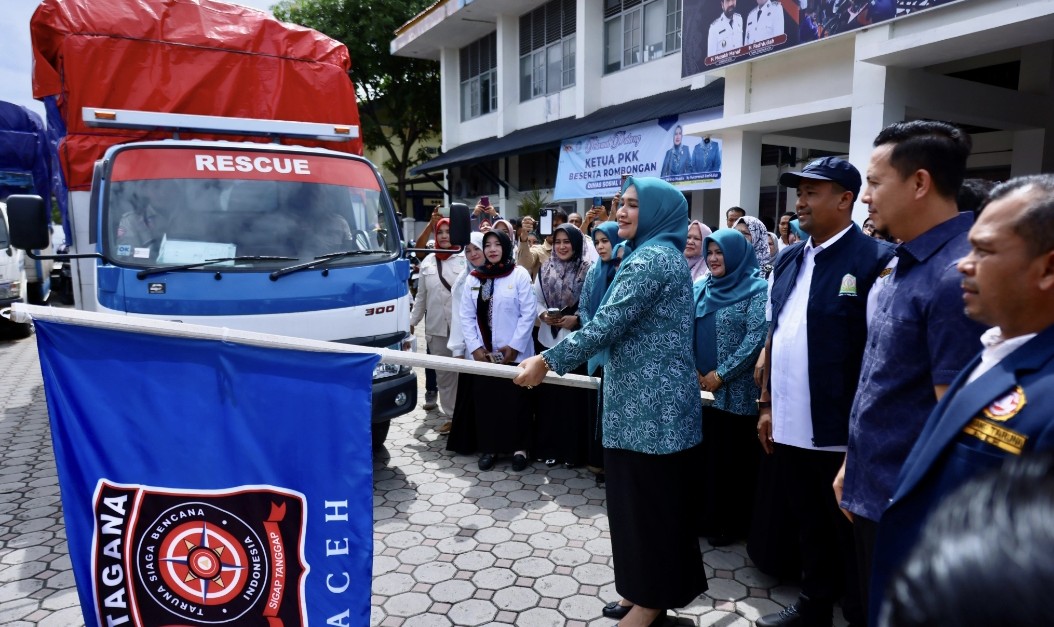 Prosesi pelepasan turut dihadiri oleh Persatuan Istri Anggota (PIA) DPR Aceh, anggota DPRA ini berlangsung di halaman Kantor Dinas Sosial Aceh, Rabu (22/10/2025).